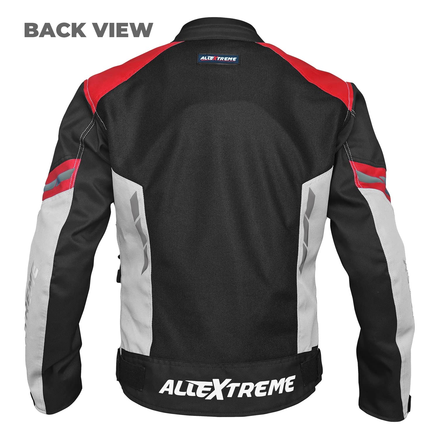 Allextreme TURBO Bike Riding Jacket Mesh Fabric Racer Motorcycle with Back Elbows Shoulders Protection and All Season Night Visibility Sticker for Men (2XL, Red)