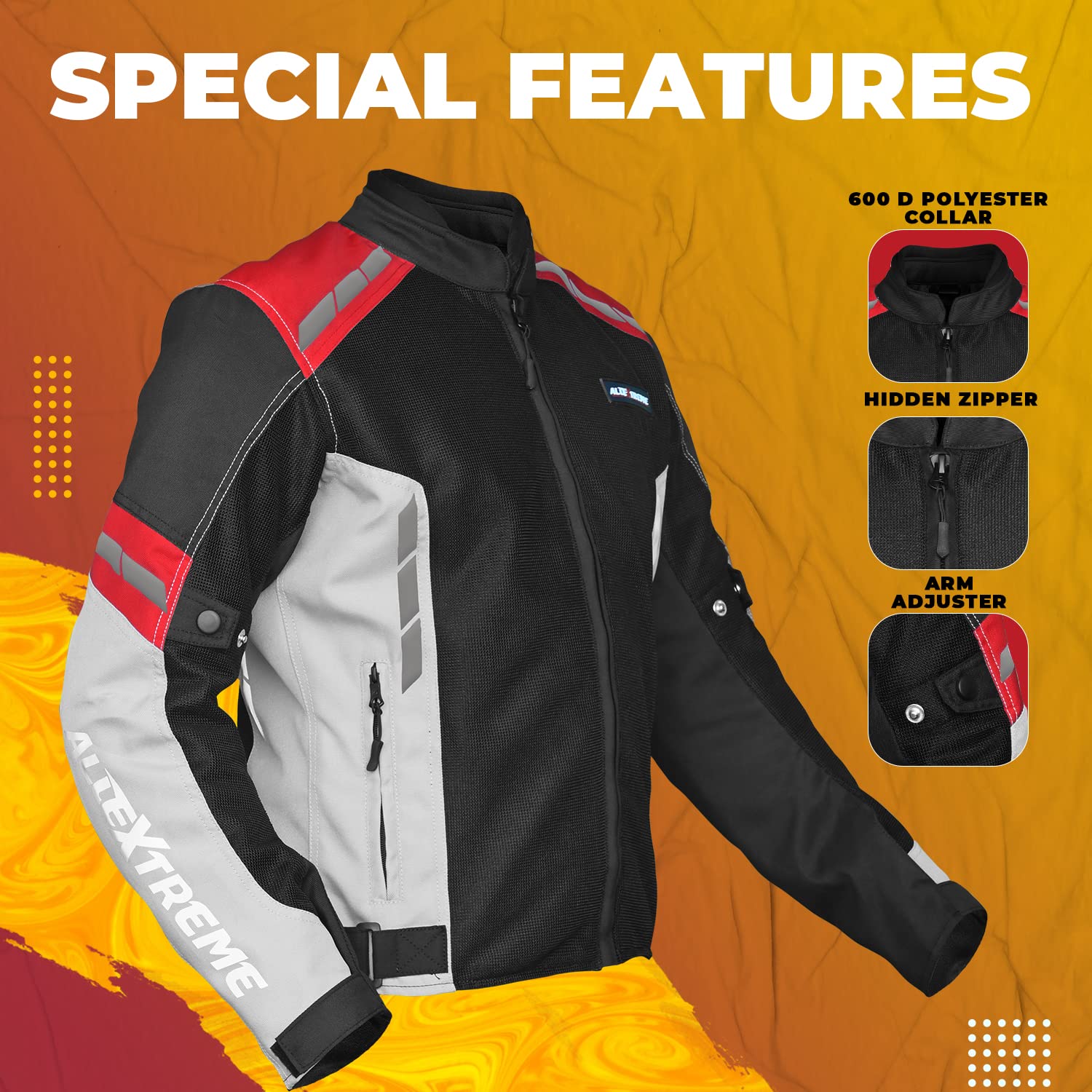 • MESH FABRIC FOR BREATHABILITY: The jacket features a premium quality mesh fabric that has a GSM of 300. This allows for improved air circulation and helps to keep the rider cool and comfortable, even during hot and humid weather conditions.